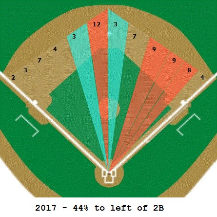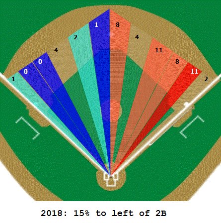 Harper is seeing more shifts this season – both full shifts, meaning three defenders on the right side of the infield, and partial shifts, which entails two defenders significantly deviating from their normal positioning. And though he was able to beat shifts with regularity (and then some) last season, that isn’t happening in 2018.