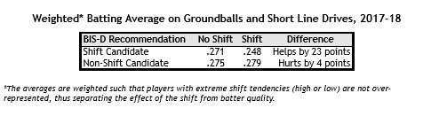 *The averages are weighted such that players with extreme shift tendencies (high or low) are not overrepresented, thus separating the effect of the shift from batter quality.