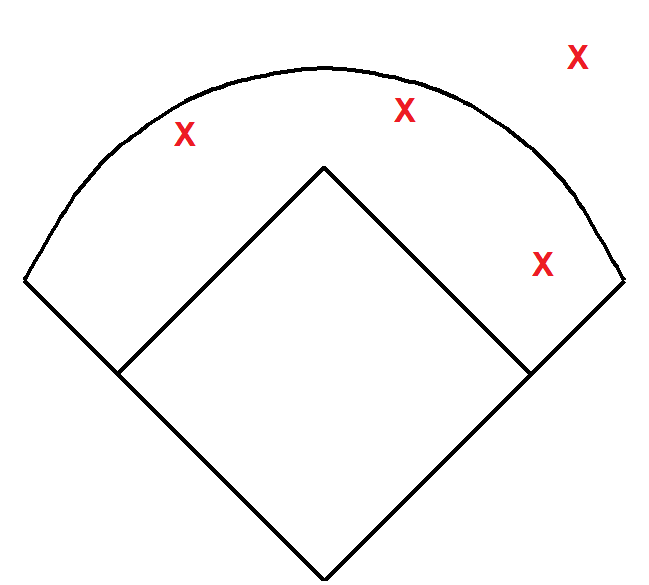 (The straight lines represent the base lines, rather than the true edges of the infield grass.)