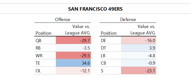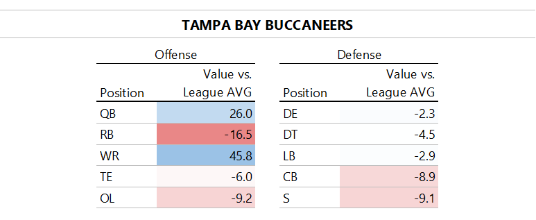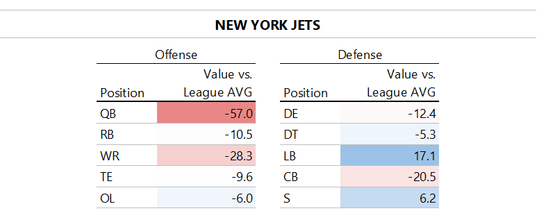 With the free agency finally slowing down, all eyes are turning towards the draft. With that in mind we looked at how teams at the top of the draft have used free agency to bolster their records, and how it may affect their decision come draft day. Team need charts are based on SIS’s unique Total Points metric compared against the league average at each position.