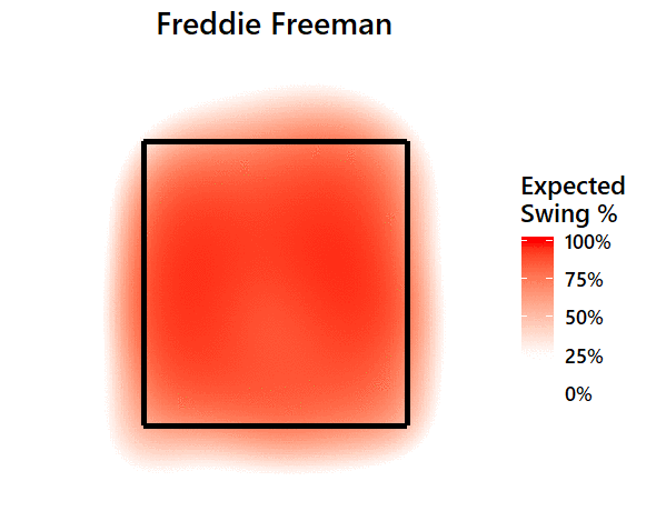 If a pitch is anywhere in the strike zone, Freeman is likely to swing. Prior to his 85% rate last year, he swung at 84% of pitches in the zone in 2017 and 81% in 2016.