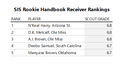 There has never really been a consensus among draft analysts about the top WRs in this years draft, and the picture hasn’t become much clearer as we approach the draft. One player that seems to be sliding though is N’Keal Harry, who comes in as the top receiver in the SIS Rookie Handbook.