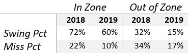 Cody Bellinger Plate Discipline, Inner Third and Inside, 2018-19