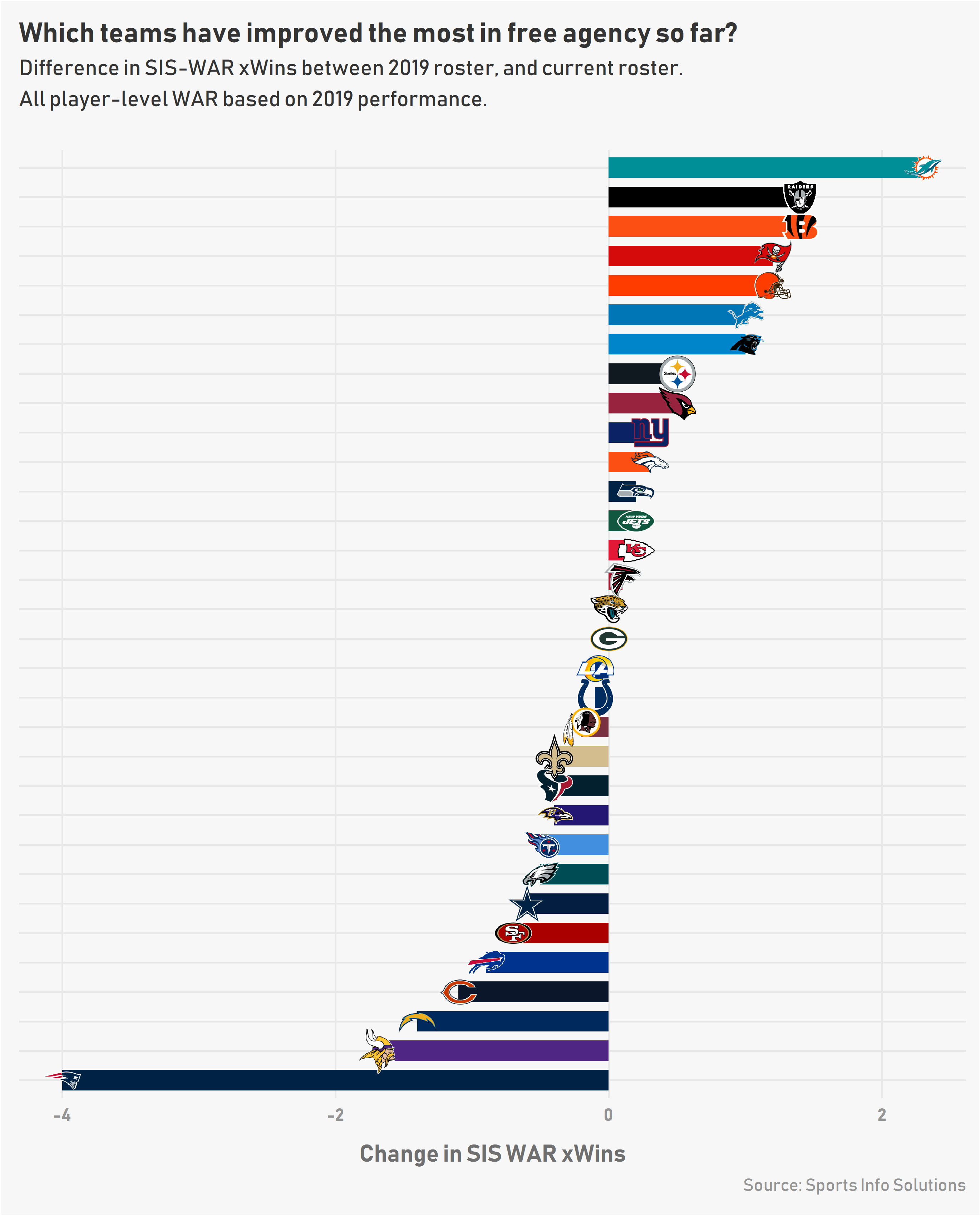 While the rest of the sports world has come to a screeching halt, the NFL offseason has been as chaotic as ever. SIS-WAR xWins can be a helpful tool to make some sense of what exactly has gone down at a high-level.