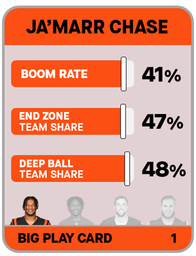 Chase was the runaway top choice; he ranks 2nd in deep ball team share, and 3rd in both Boom Rate and end zone team share.