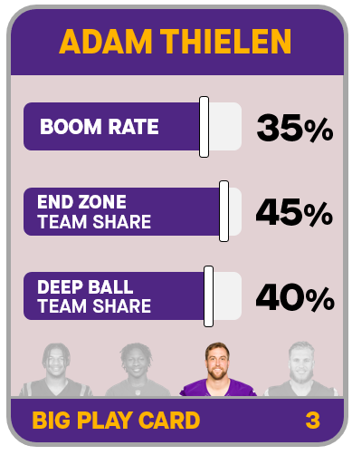 Justin Jefferson was also a candidate for this list, evidence that the Vikings offense is funneled through their two top receivers. Thielen has the slight edge in both end zone targets (5 to 4) and deep ball targets (17 to 16).