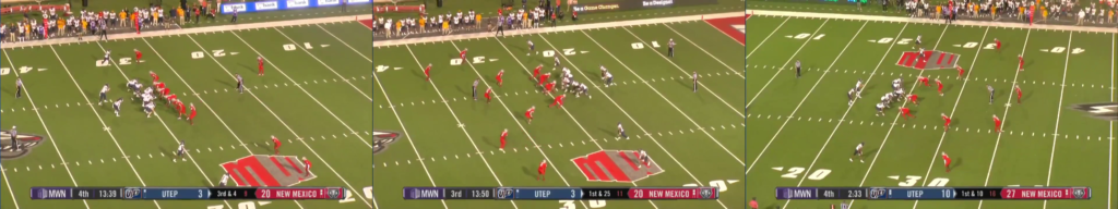 UTEP runs the most diverse set of personnel packages in the FBS. The Miners use 10, 11, 12, 20, and 21 personnel at least 10% of their snaps. But only plays with 20 personnel increased UTEP’s expected points this game, doing so by a measly .96. The 11 personnel plays fared the worst, losing 23.5 expected points on 32 plays with three turnovers.