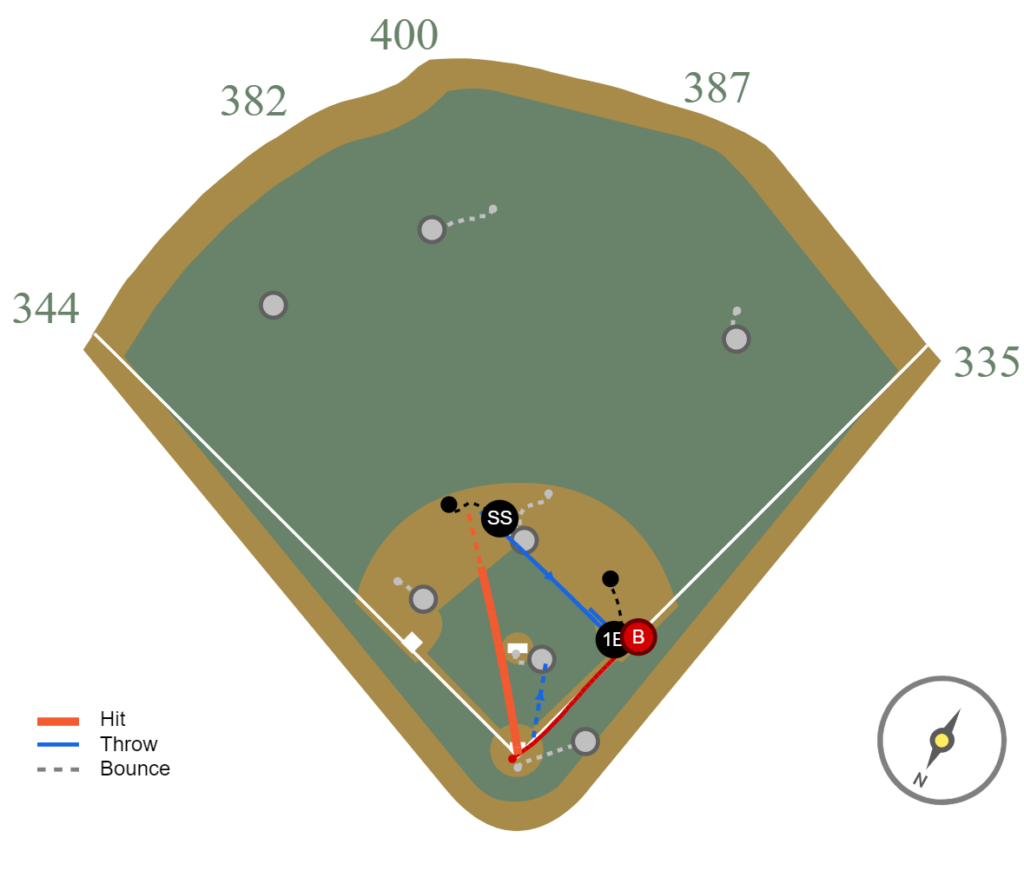 Understandably so. Based on where Wendle is positioned, that ball – hit 86 miles-per-hour by Nick Gonzales – has a 78% out probability.